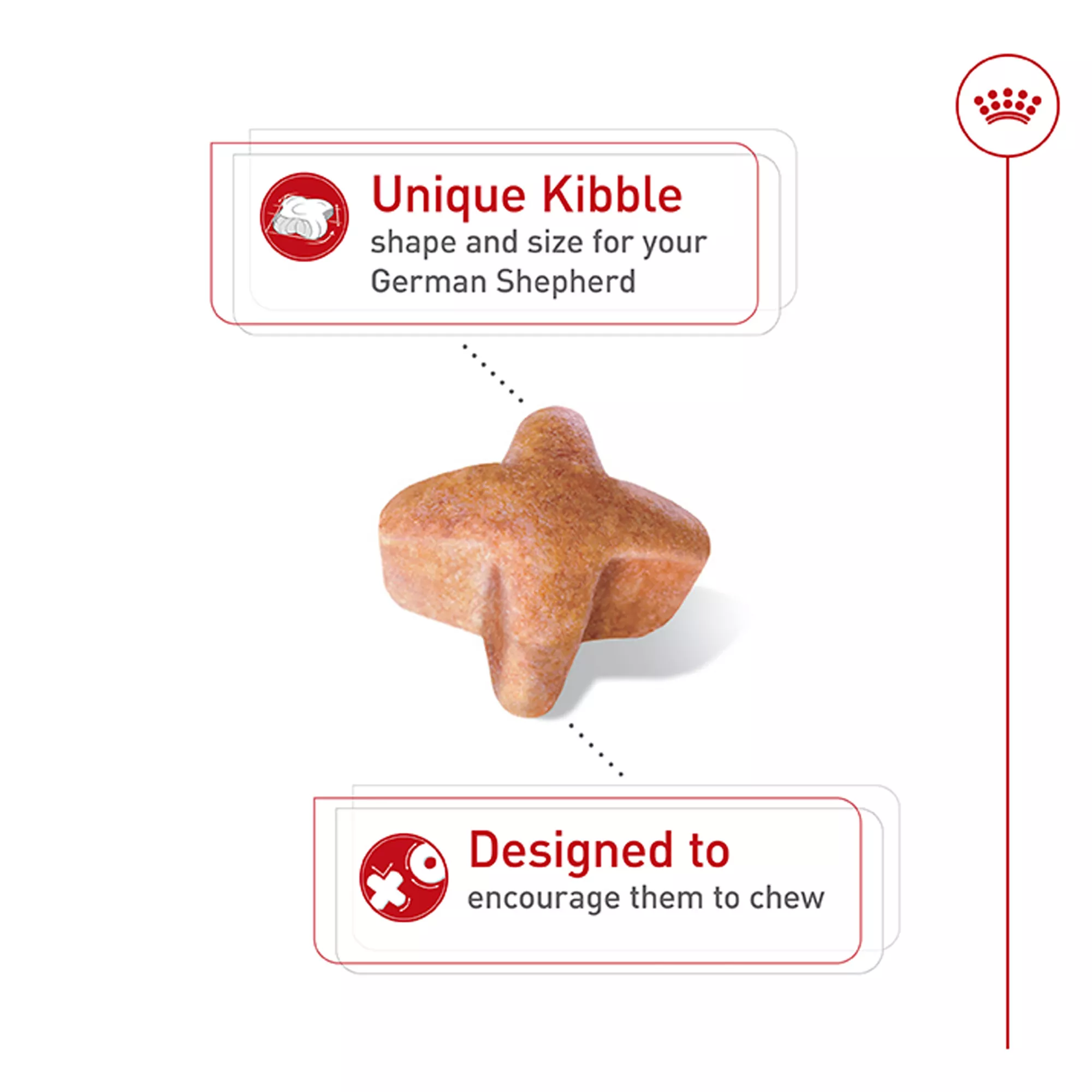 Specialized kibble shape and texture designed for a German Shepherd’s long, strong muzzle and teeth