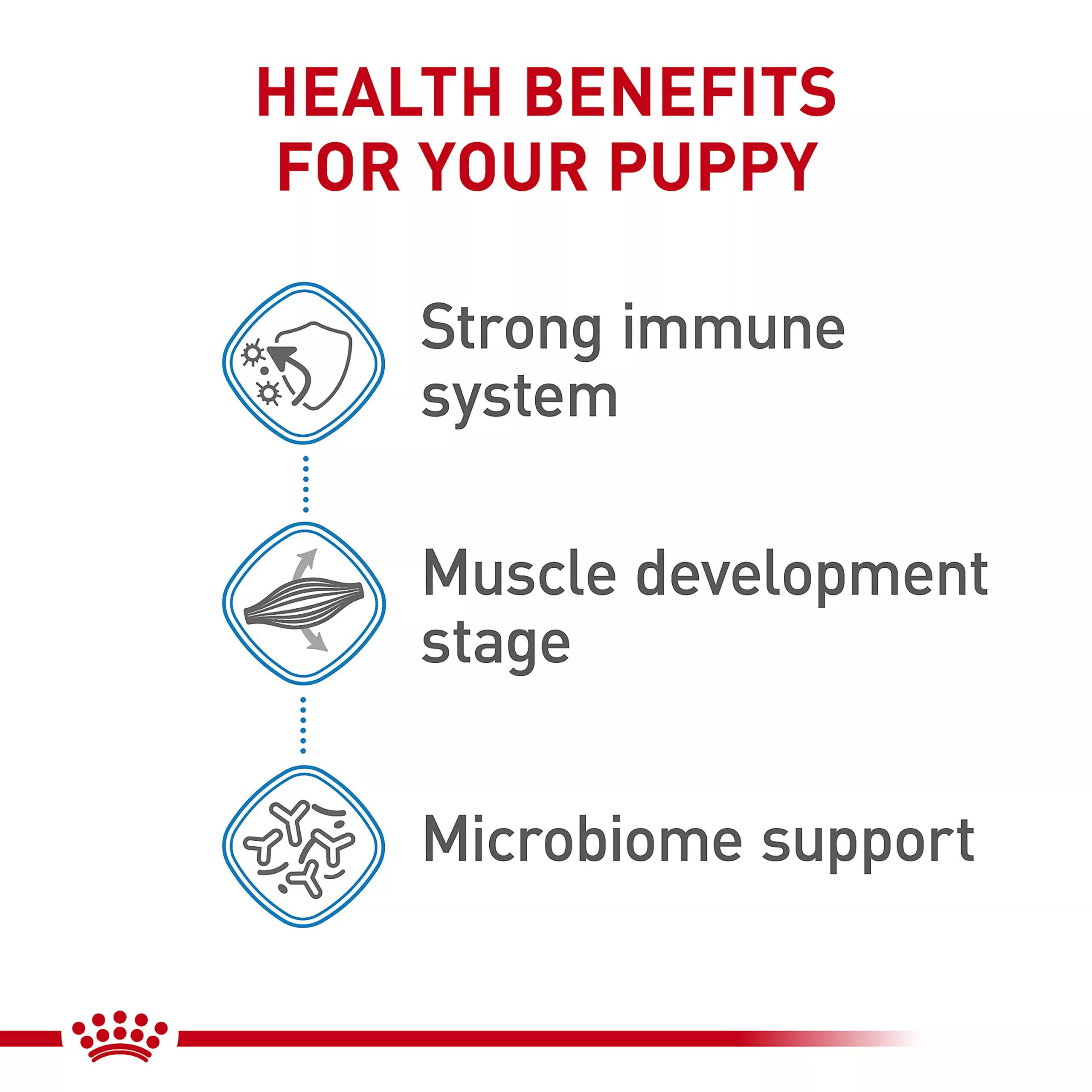 MUSCLE DEVELOPMENT STAGE: An adapted protein content helps support muscle development as your large breed dog gains more muscle during their final growth stage