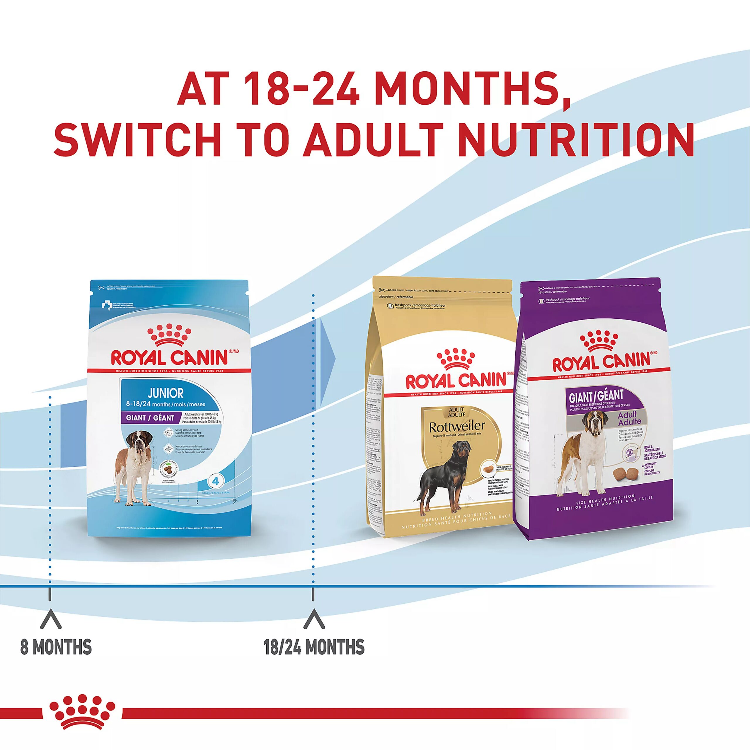 FORMULATED FOR GIANT JUNIOR DOGS: Royal Canin Giant Junior Puppy Dog Food is tailor-made for puppies over 8 months of age and up to 18-24 months with an expected adult weight of over 100 lb