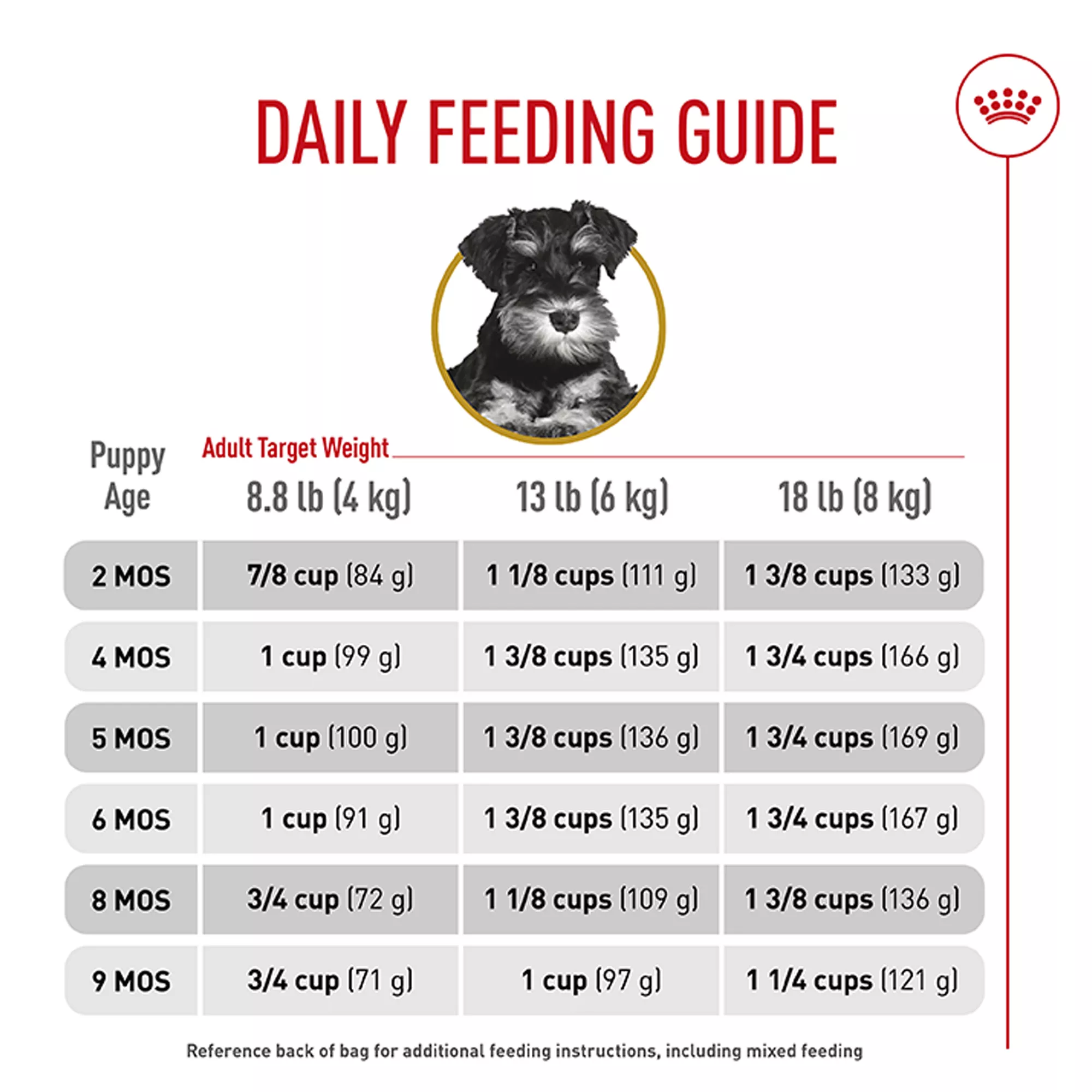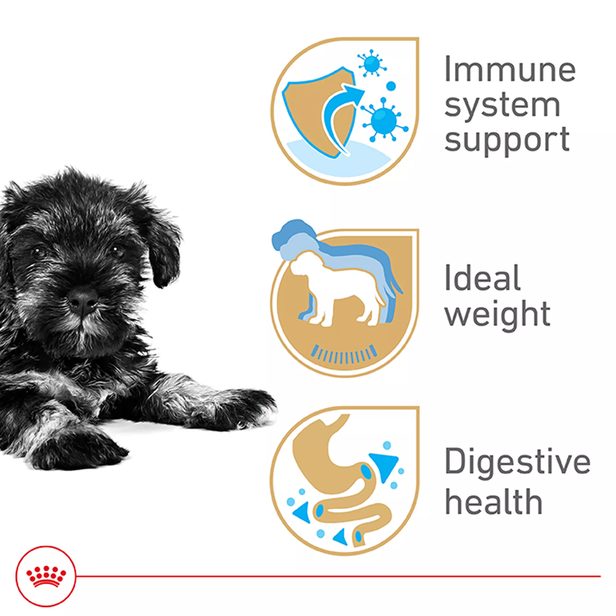 FORMULATED FOR PUREBRED MINIATURE SCHNAUZERS: Royal Canin Miniature Schnauzer Puppy Dry Dog Food is designed to meet the nutritional needs of purebred Miniature Schnauzers 8 weeks to 10 months old