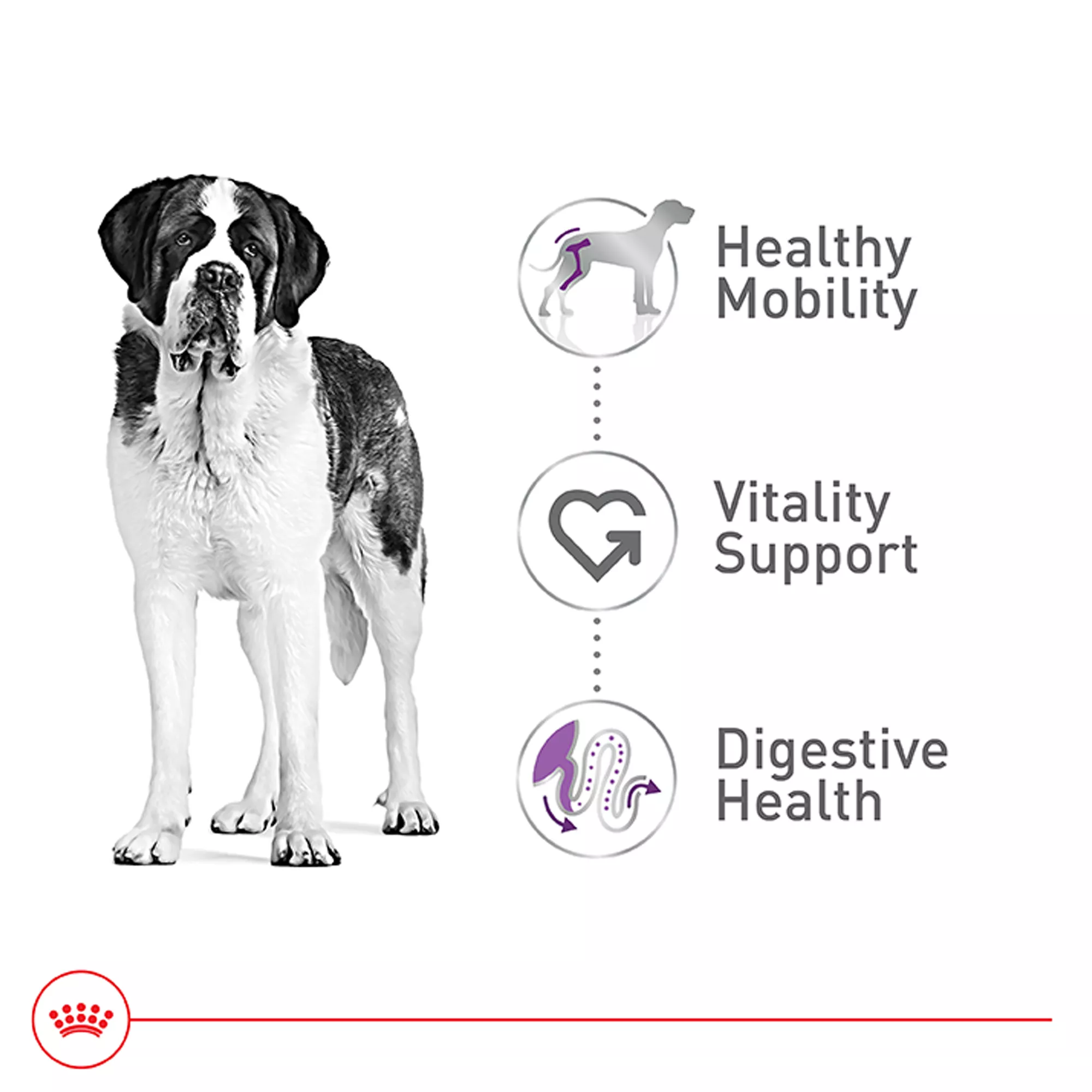 HEALTHY MOBILITY: A combination of minerals and nutrients to support the extra demands on a giant dog’s bones and joints
