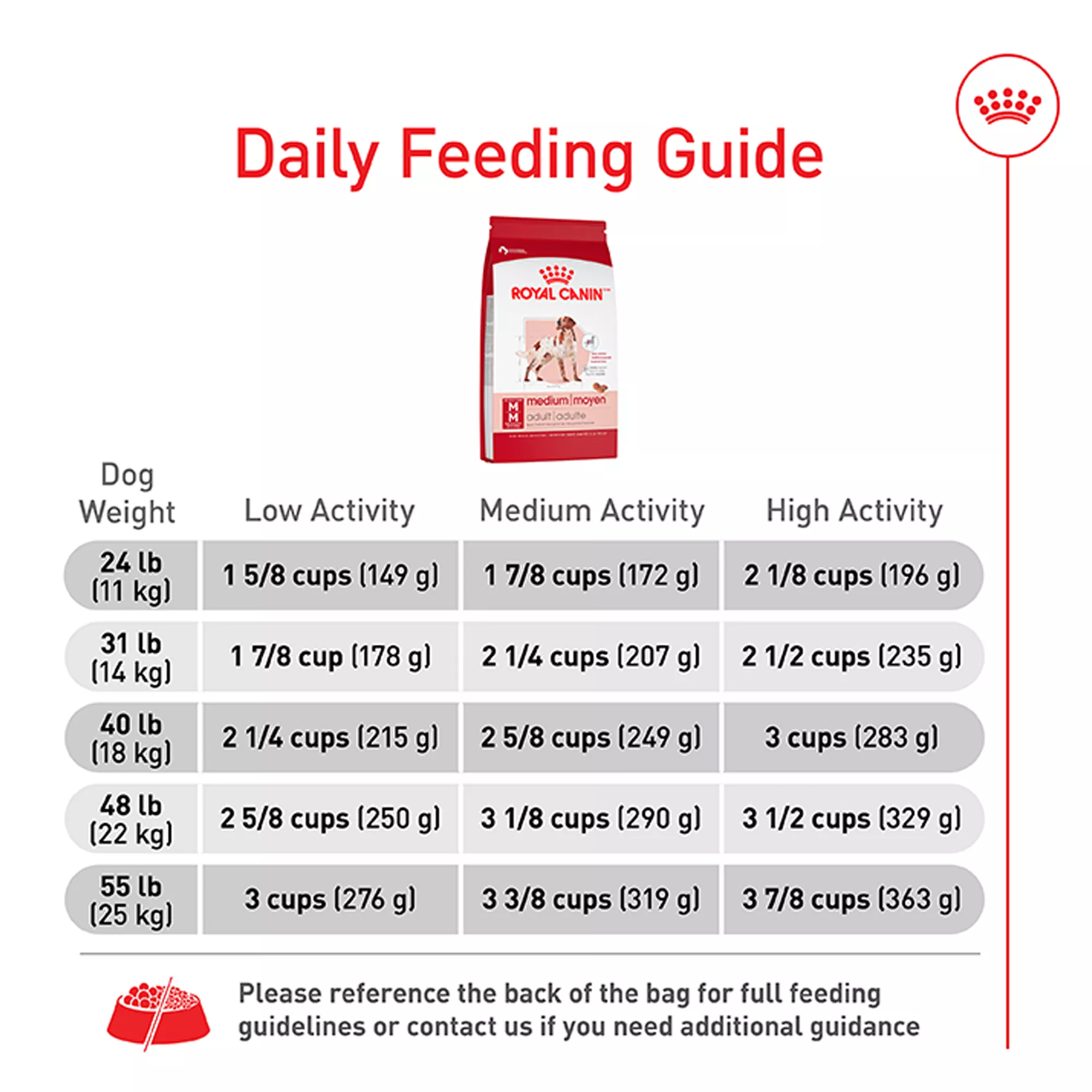 THIS BAG CONTAINS 138 CUPS OF FOOD: Refer to the packaging for daily feeding guidelines and to establish your shipping schedule!