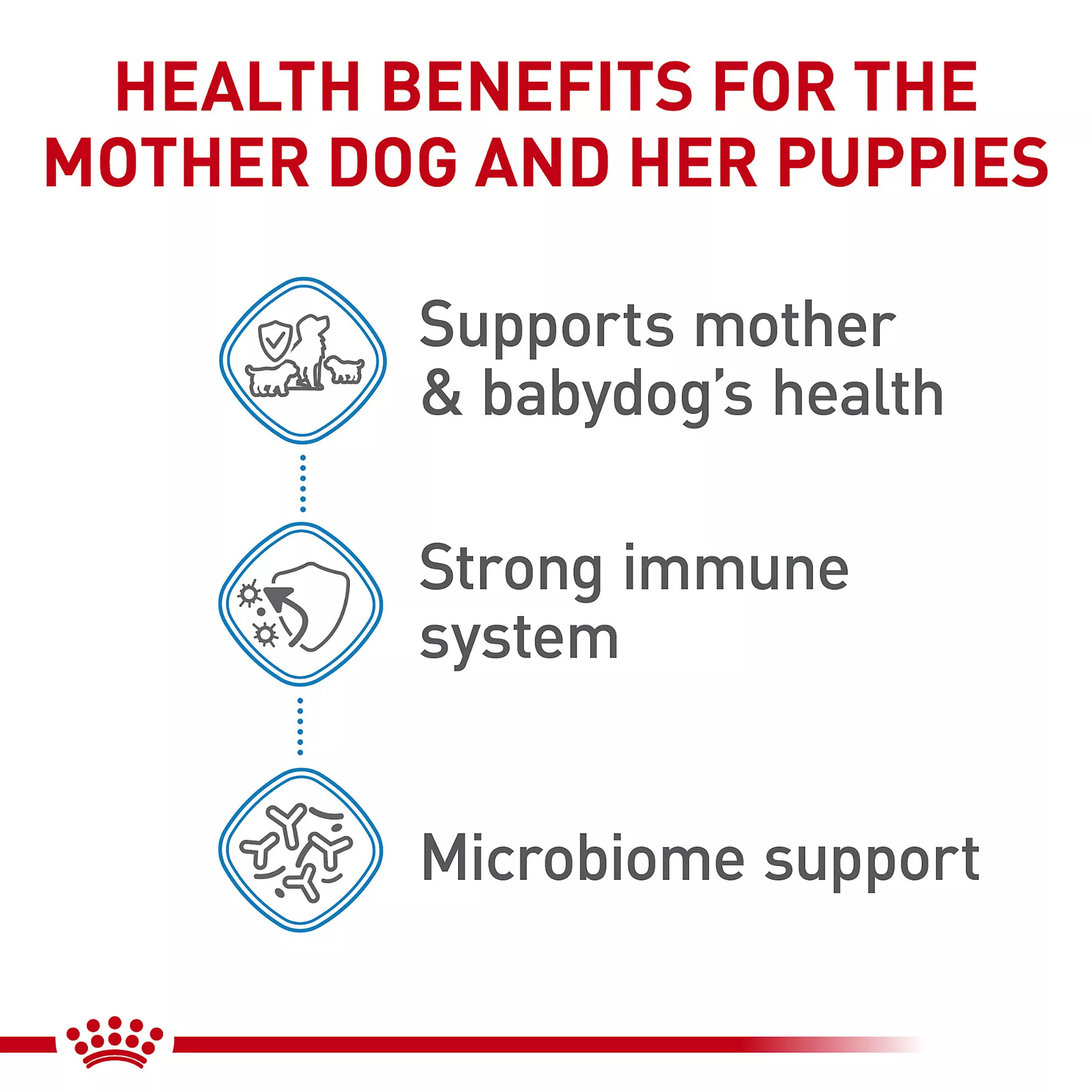 Description: Royal Canin Mother and Babydog Dry Dog Food is specially formulated to meet a mother’s high energy needs at the end of gestation and during lactation for her nursing puppies’ optimal growth. Nutritional response helps to facilitate the transition from mother’s milk to solid food. Clinically proven antioxidants, including vitamins E and C, help support the healthy development of immune systems….