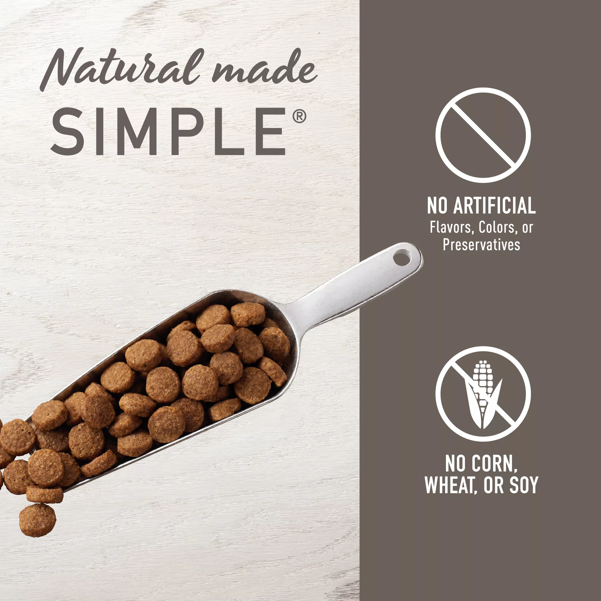 Free of artificial colors, flavors or preservatives