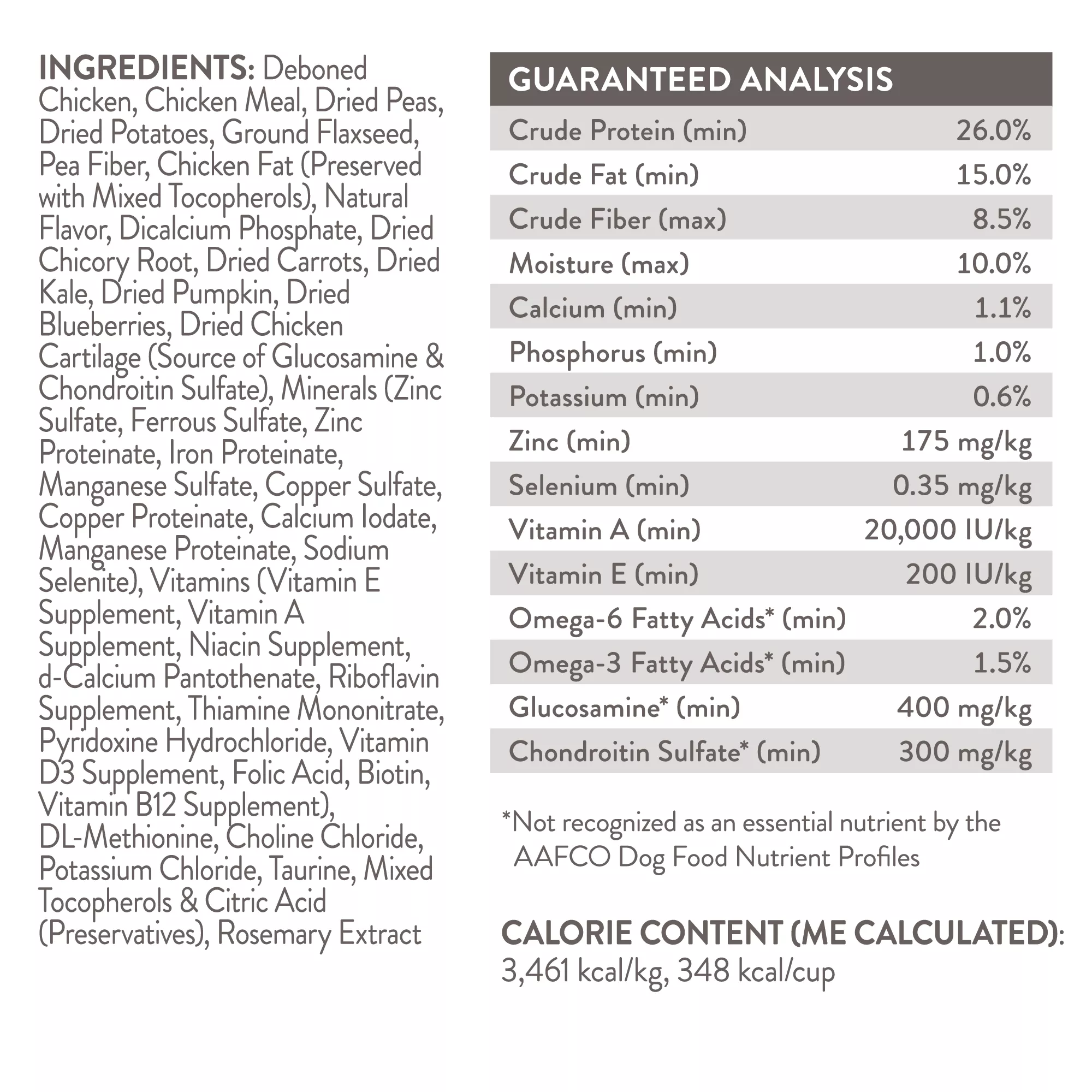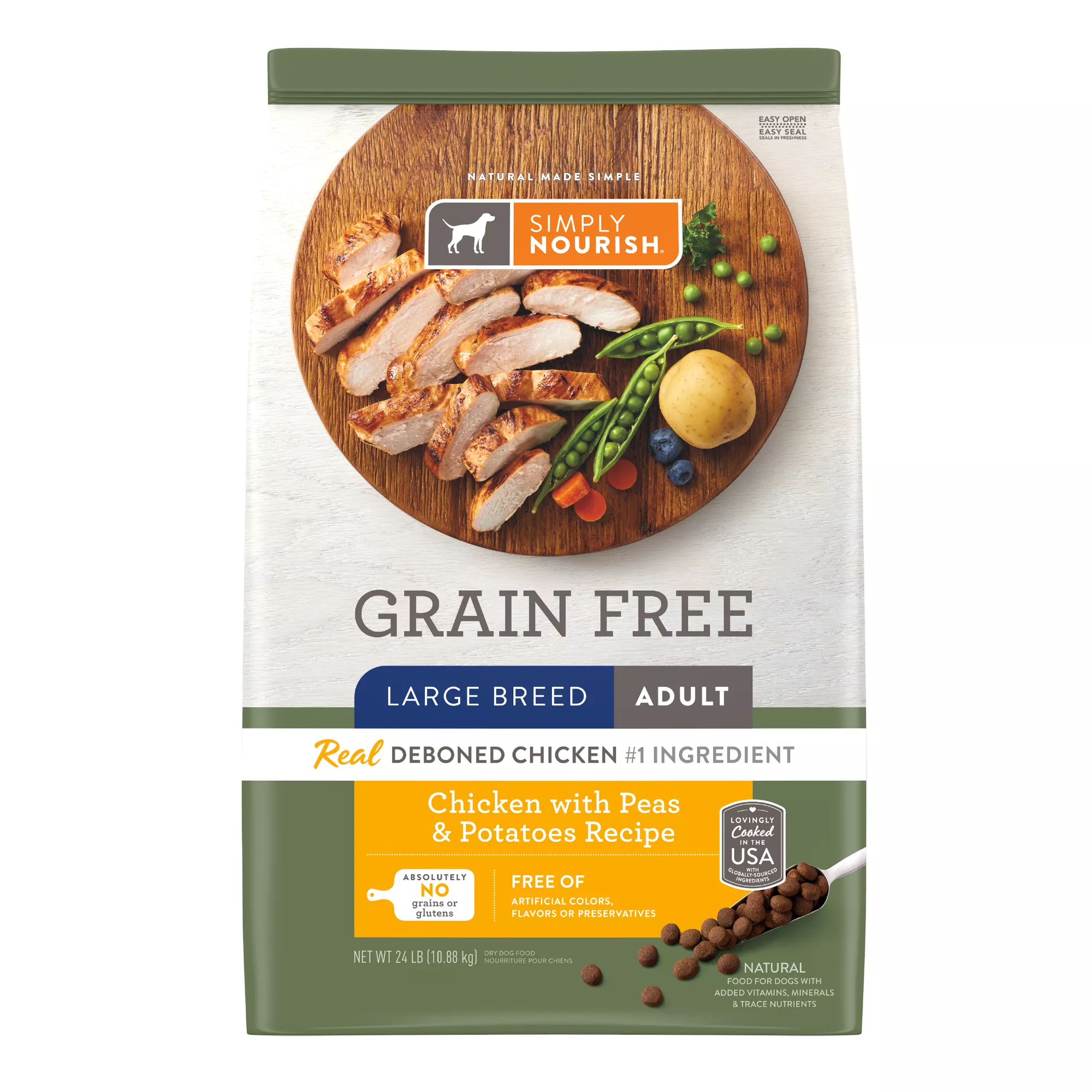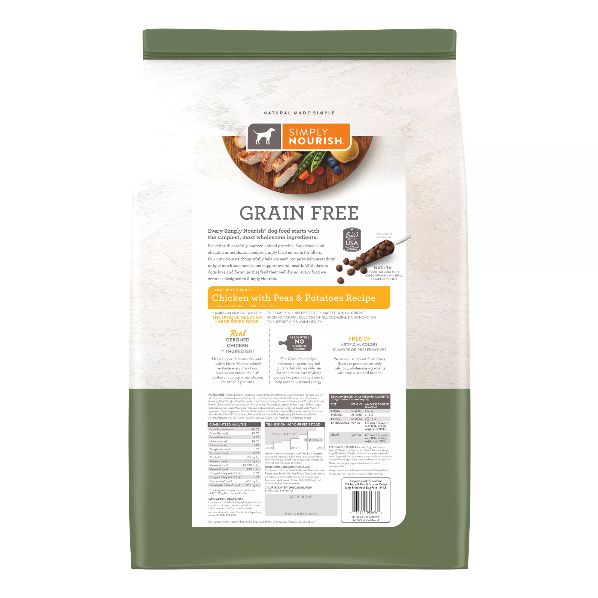 Simply Nourish Chicken with Peas & Potatoes Recipe Grain Free Large Breed Adult Dog Food is packed with nutrients such as natural sources of glucosamine & chondroitin