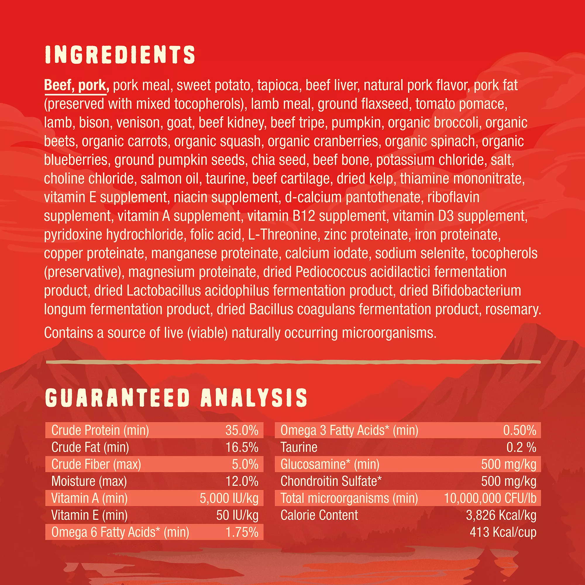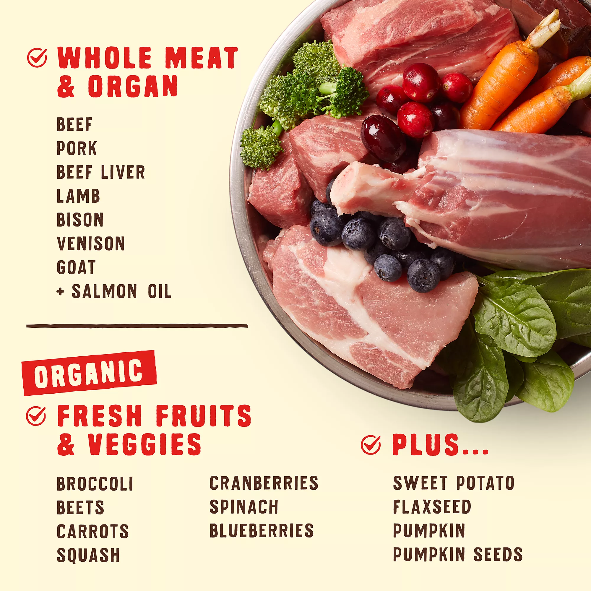 Packed with meat from six poultry-free animal proteins – beef, pork, lamb, bison, venison and goat
